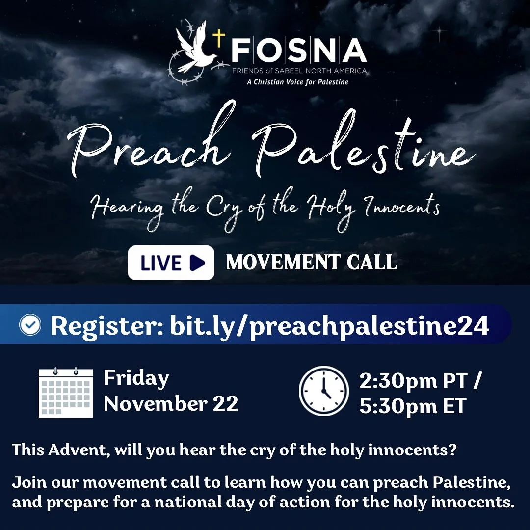 Friends of Sabeel North America (FOSNA) is an interdenominational Christian organization seeking justice and peace in the Holy Land through education, advocacy, and nonviolent action.