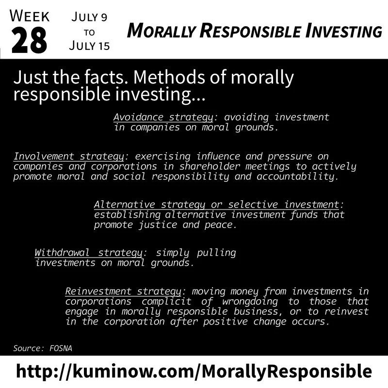 Kumi Now! (Week 28) Morally Responsible Investing. Israel’s oppression of Palestinians and flouting of United Nations resolutions is ongoing and unwavering. Dozens of international corporations profit off this oppression by contracting with the Israeli government and participating in the construction of illegal settlements. As we mark the beginnings of the BDS Movement on July 9, 2005, here’s what you need to know about morally responsible investment and what you can do so that together we can rise up.